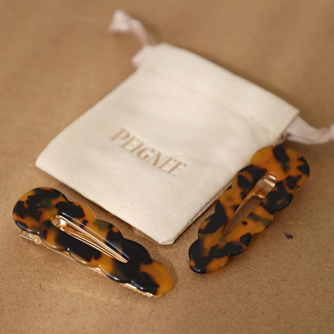 Eleganza parigina con spirito selvaggio. I fermagli Signature Pantera di Peignee Paris sono l'accessorio perfetto per incorniciare il viso durante la skincare routine o per completare il tuo look con un tocco chic e audace.